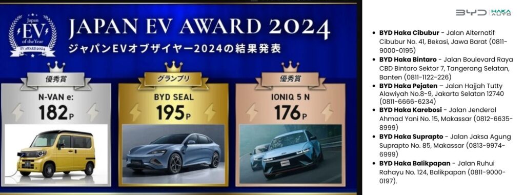 Sebelumnya, BYD Seal juga meraih gelar “Top Ten Best Models” dalam ajang Japan Car of the Year 2024 – 2025 yang diberikan oleh Japan Car of the Year Selection Committee.