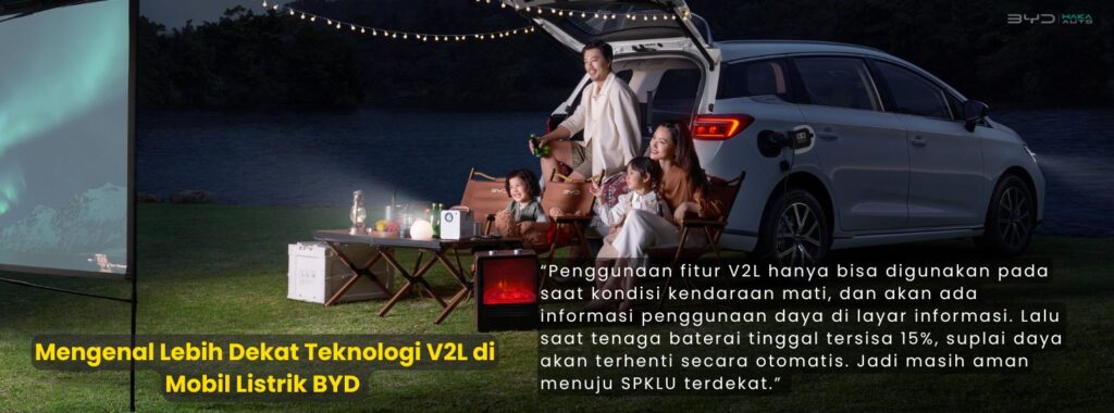 “Fitur dan adaptor V2L merupakan satu di antara fitur unggulan yang didapat konsumen secara otomatis ketika membeli mobil listrik di setiap outlet BYD Haka Auto. Namun, ada baiknya tetap memperhatikan beberapa hal saat menggunakan, di antaranya gunakan fitur V2L di tempat yang aman dan kering, serta hindari lingkungan dengan risiko air atau kelembapan tinggi,” kata Asep Amar, Service Manager BYD Haka Bintaro.
