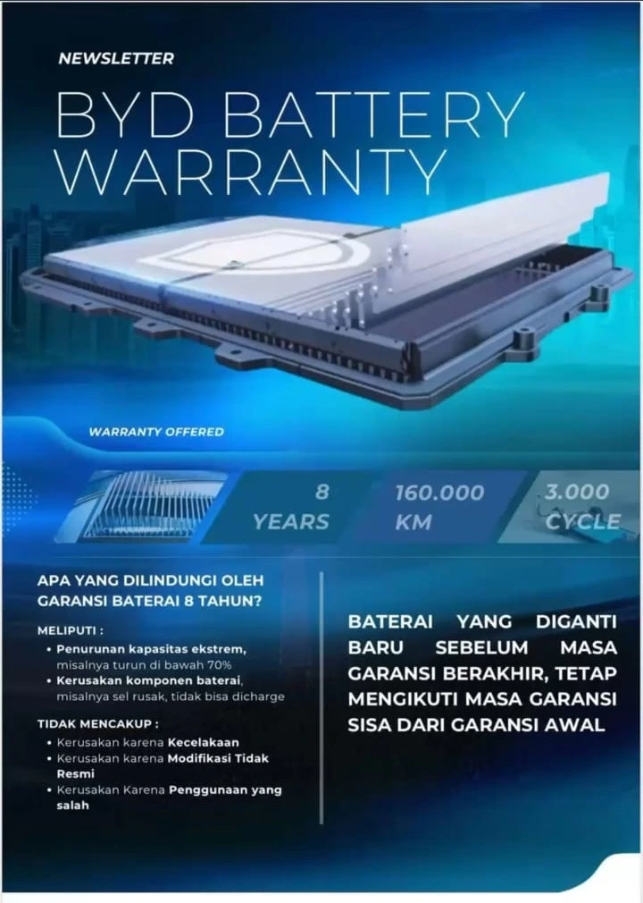 Garansi baterai BYD mencakup dua hal penting yang sangat krusial bagi performa kendaraan listrik: